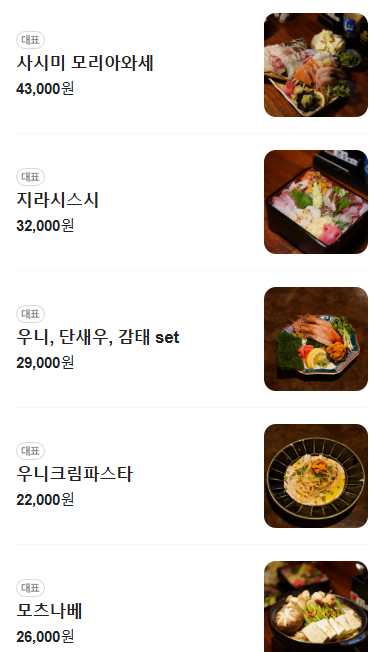 | 우니크림파스타 | 22,000원 | 트러플+우니의 고급 감칠맛 |